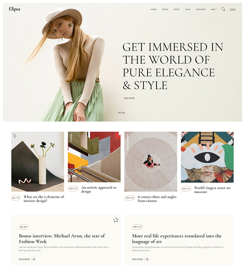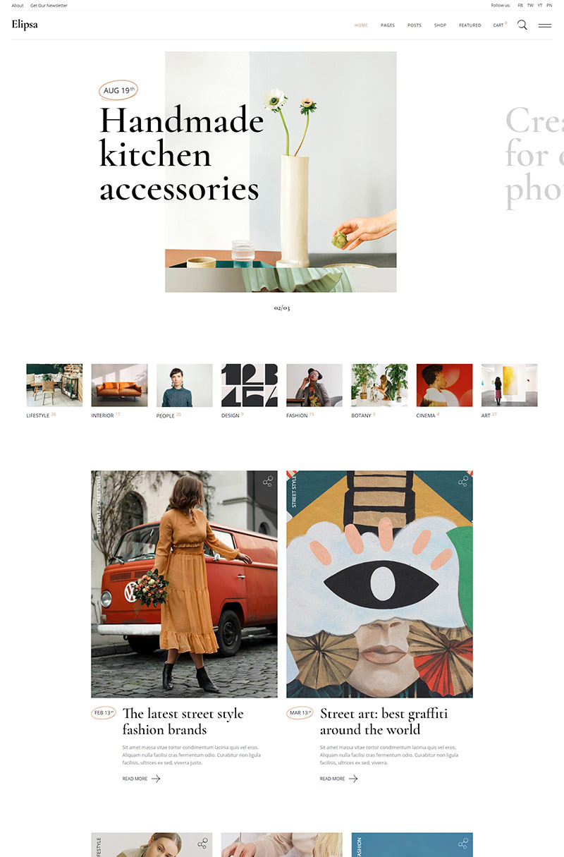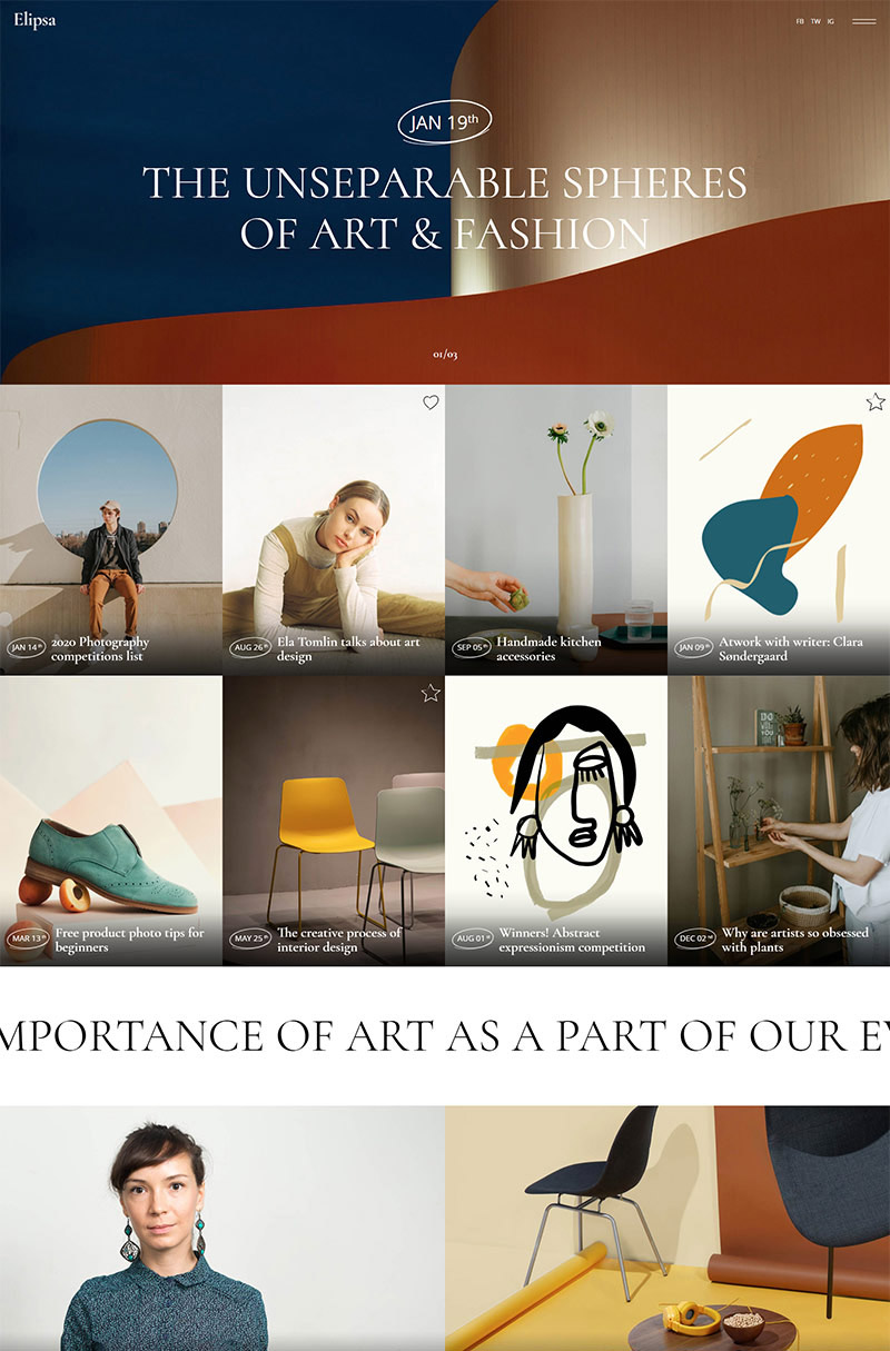 Let your readers get immersed into a world art, culture and lifestyle with Elipsa, a theme for creative publications equipped with six ready-to-go magazine homes, various flexible elements designed for your posts & tons more.